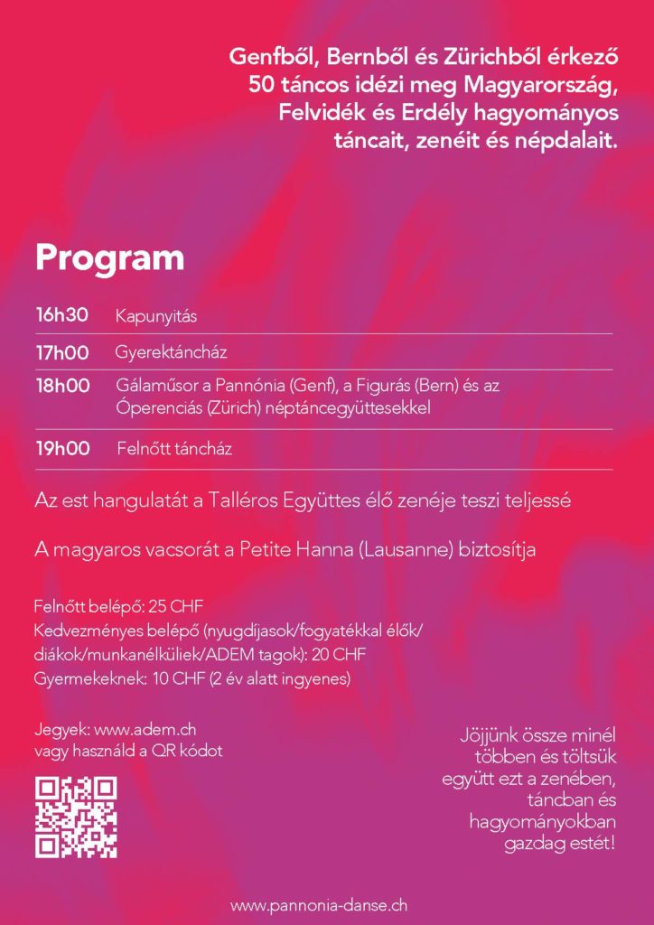 Idén májusban újra összegyűlnek a svájci néptánc egyesületek, és táncra hívják kicsiket, nagyokat. Egy estére találkozik hagyomány, zene, tánc és közösség, majd a gálaműsort követően gyerektáncház és felnőtt táncház várja az érdeklődőket.